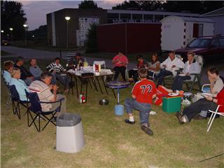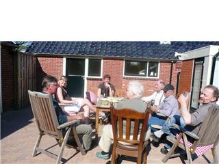 Tijdens de BBQ met boergeitenvlees een gezellig samenzijn van geitenfokkers