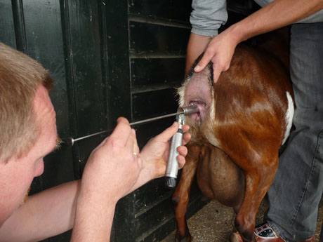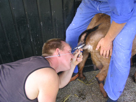 Op vrijdag 3 augustus hebben we sperma 'afgetapt' van de veelbelovende jonge bokken Iceberg (vlp. AV86) en Cunobelin (vlp. AV85) omdat zij op export gaan naar Frankrijk en wij op deze wijze hun genetica in de toekomst eventueel toch kunnen benutten. Ook is er voor het tweede jaar sperma gewonnen van Peatcourt Snow en tevens hebben we twee sprongen gepakt van onze gastbok Tyegronon Cchief. Rond het middaguur arriveerde onze vaste geiteninseminator en die heeft een aantal volwassen geiten die waren gesynchroniseerd, geinsemineerd met ingevroren sperma van de Amerikaanse bokken.