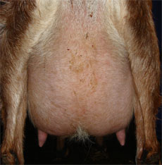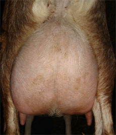 Met Laguna, Charmaine en Lakota Girl hebben de laatste drie geiten dit seizoen afgelamd. Laguna bracht een fraai geitlam, Charmaine had ook een fraai geitlam en een prima boklam en Lakota Girl twee mooie bokken. Lakota Girl en Laguna hebben beide ook prima uiers gekregen. Op de foto het uier van Lakota Girl met zo'n 9 uur melk in het uier
