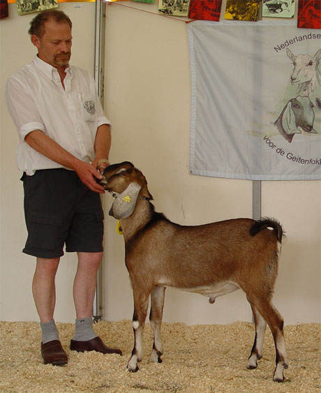 De 3-jarige bok Fangio v Oudwoude is teruggekocht na 3 jaar dekdienst op het biologische geitenbedrijf van Henk Kuipers en zijn vrouw in Lettele. Fangio is op de keuringsdag in Heeten gearriveerd rechtstreeks uit het weiland en direct ingeschreven met AV89 totaal! Hij is momenteel gestald voor dekdienst bij Janny de Jong van de Sunshine stal in Haskerdijken. Van zijn volle broer Tsuba worden momenteel in Belgie beste dochters gemolken in verschillende commerciele melkgeitenhouderijen.